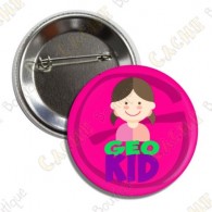 Badge "Geo Kid", spécialement créé pour les petits Géocacheurs, à poser dans vos caches en cadeau pour le FTF ou à accrocher sur votre sac à dos.
