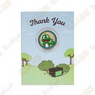 Le cadeau parfait ! Une jolie carte avec Signal the Frog pour écrire un mot, dans laquelle est inséré un magnifique géocoin Thank you!
