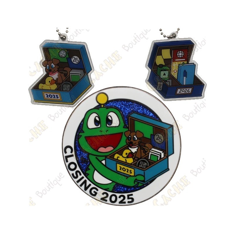 1 Géocoin + 2 travalers, avec chacun un code différent. Vous recevrez donc 3 objets trackables indépendamment !