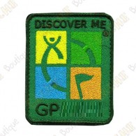 Patch geocaching preto trackable com logotipo Groundspeak.